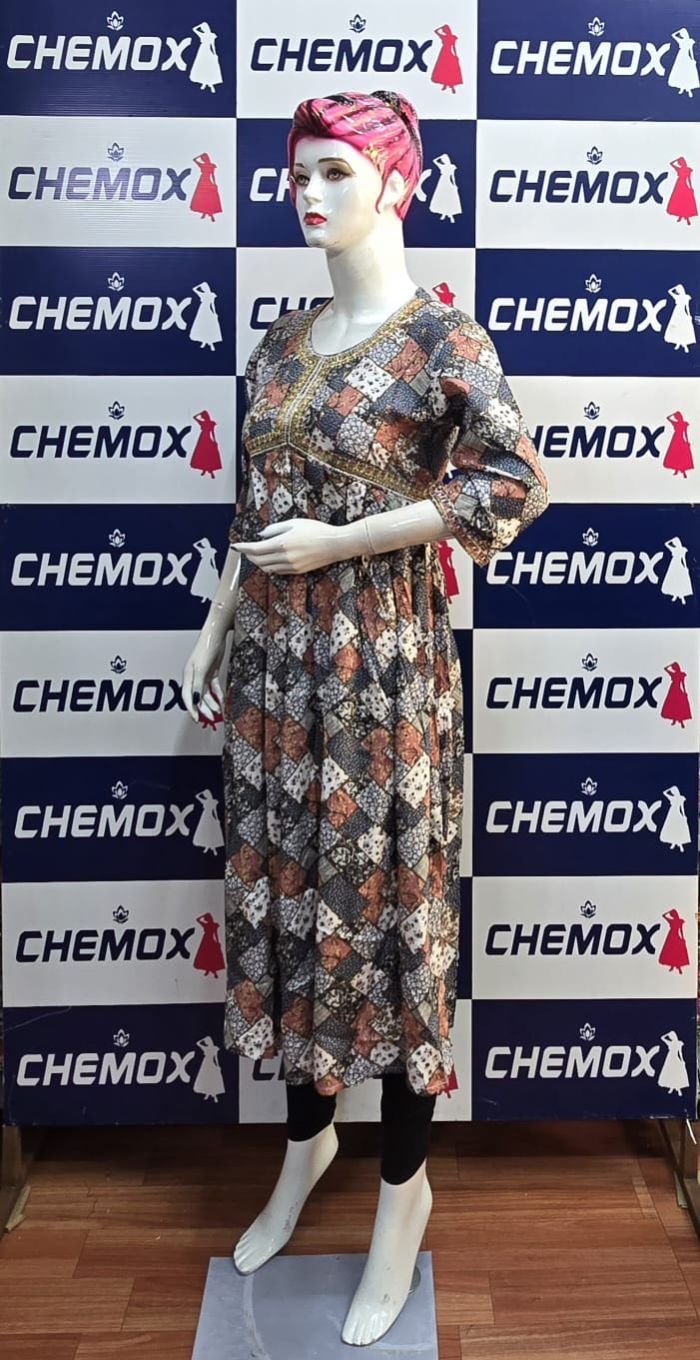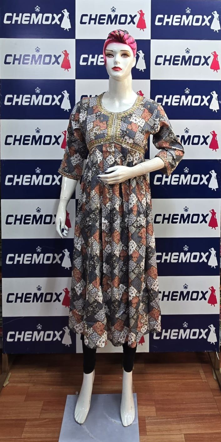 Chemox Aliya Cut Kurtis feature intricate embroidery, delicate embellishments, or elegant prints.