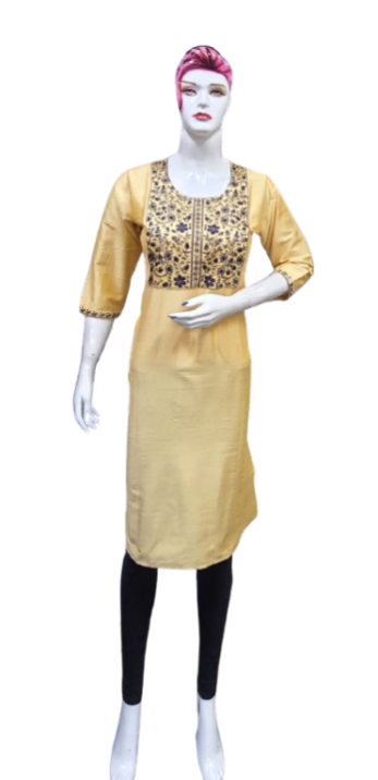 Crafted with premium-quality fabric, it offers unmatched comfort and breathability, ensuring you feel as good as you look. The embroidery design enhances the aesthetic appeal, creating a stunning contrast against the kurti's base color, making it perfect for casual outings, festive celebrations, or office wear.