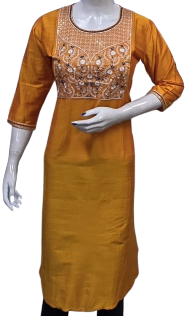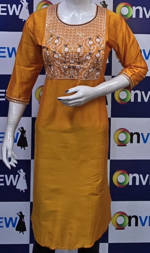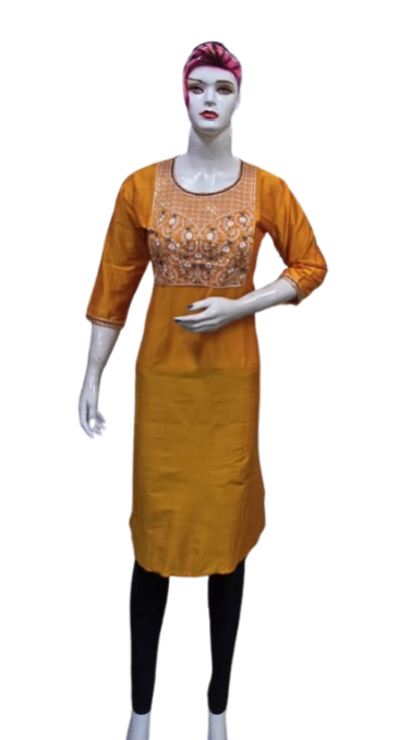 Crafted with premium-quality fabric, it offers unmatched comfort and breathability, ensuring you feel as good as you look. The embroidery design enhances the aesthetic appeal, creating a stunning contrast against the kurti's base color, making it perfect for casual outings, festive celebrations, or office wear.