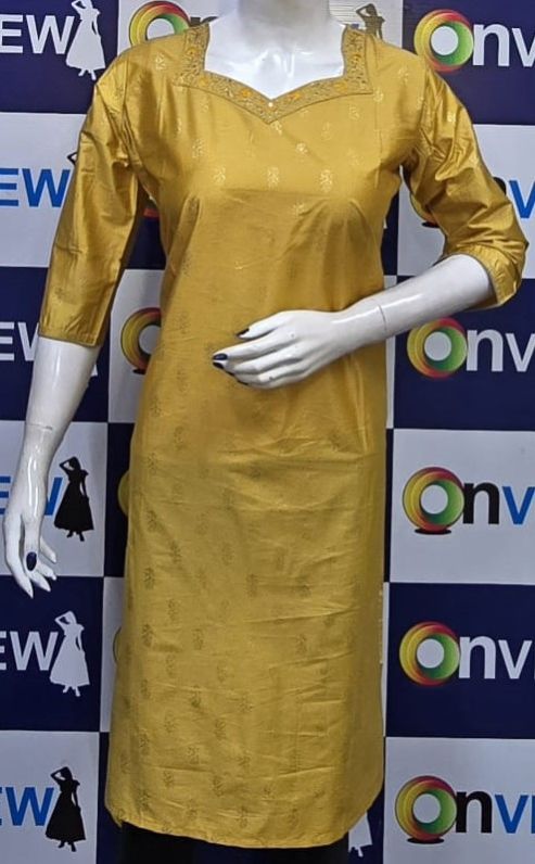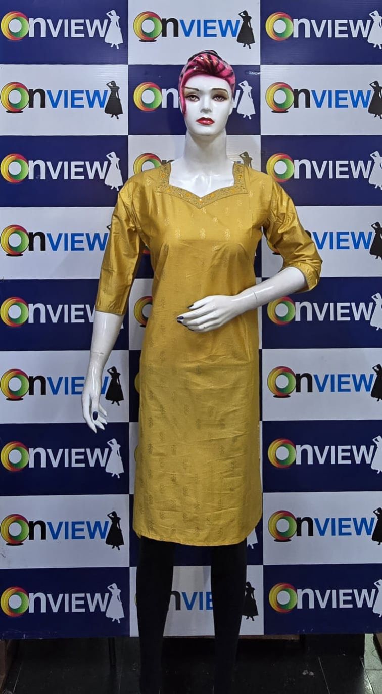 "Let the Onview Silk V Embroidery Kurti add a touch of finesse and grace to your outfit collection."