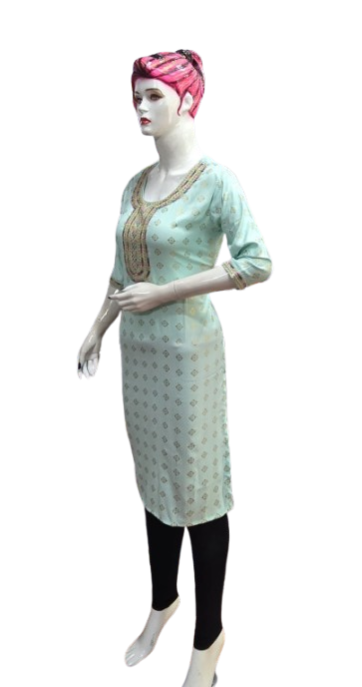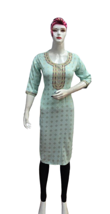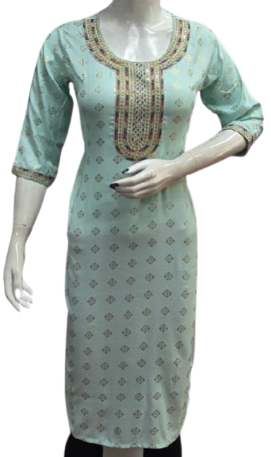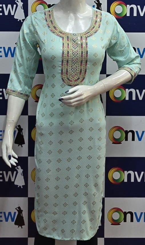 Crafted with premium-quality fabric, it offers unmatched comfort and breathability, ensuring you feel as good as you look. The embroidery design enhances the aesthetic appeal, creating a stunning contrast against the kurti's base color, making it perfect for casual outings, festive celebrations, or office wear.