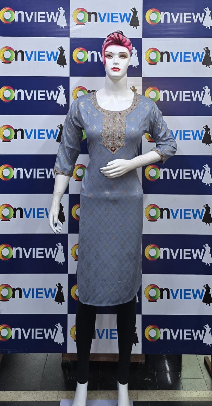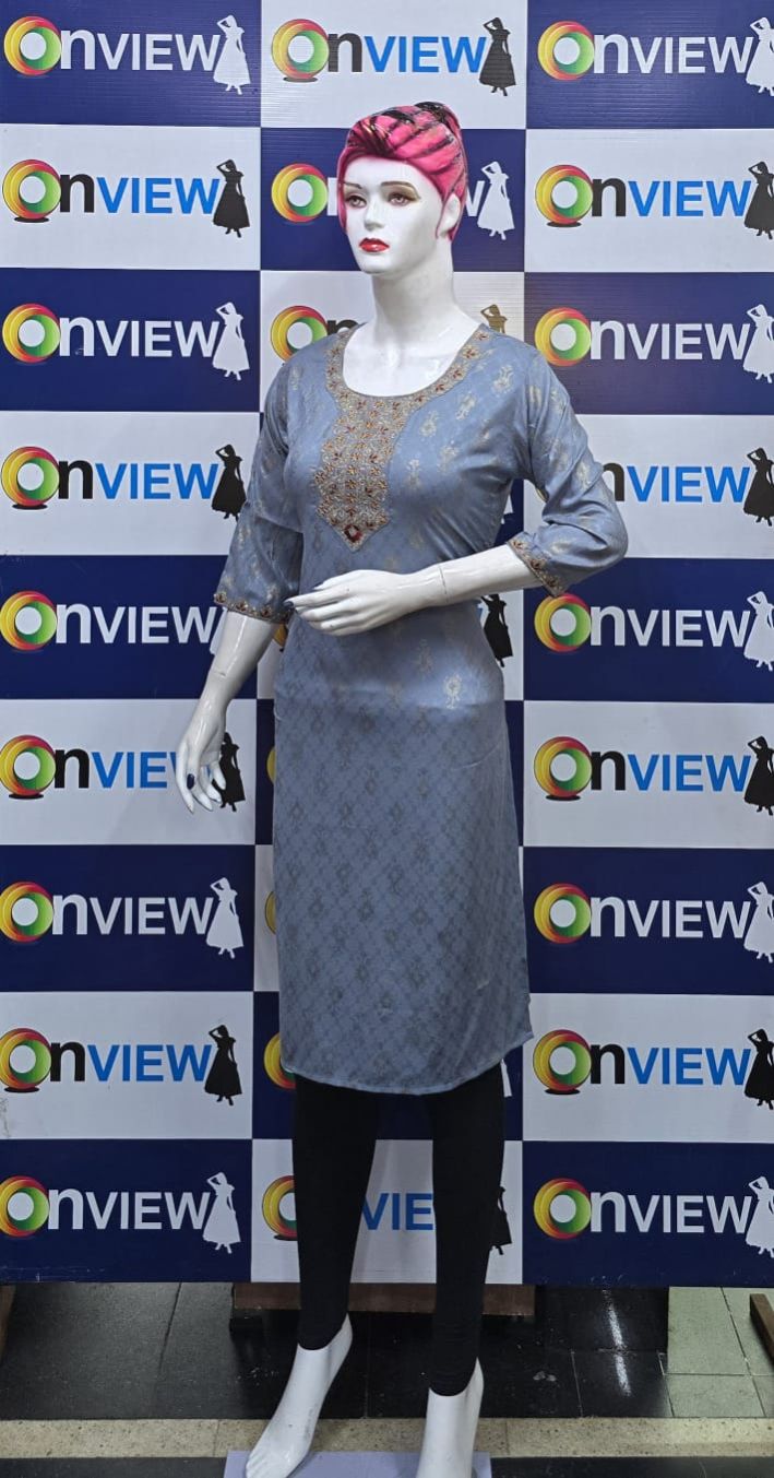 "Designed for modern women, the Onview Dobby Embroidery Kurti offers timeless elegance and reliable comfort."