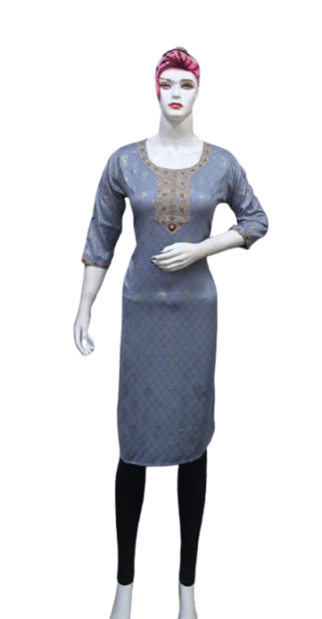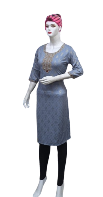 Crafted with premium-quality fabric, it offers unmatched comfort and breathability, ensuring you feel as good as you look. The embroidery design enhances the aesthetic appeal, creating a stunning contrast against the kurti's base color, making it perfect for casual outings, festive celebrations, or office wear.