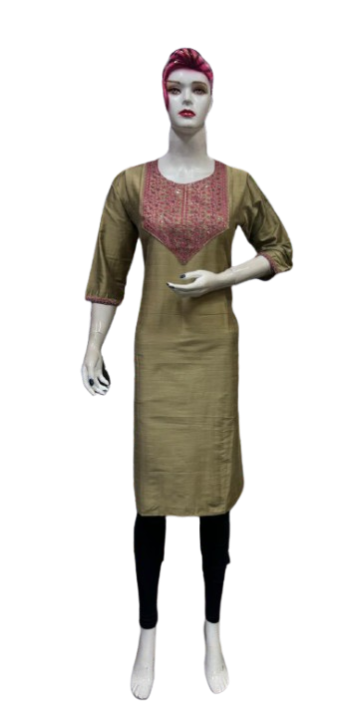 Crafted with premium-quality fabric, it offers unmatched comfort and breathability, ensuring you feel as good as you look. The embroidery design enhances the aesthetic appeal, creating a stunning contrast against the kurti's base color, making it perfect for casual outings, festive celebrations, or office wear.