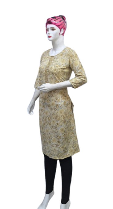 The rayon fabric used to make this kurti is not only comfortable but also durable and easy to care for. The fabric drapes elegantly on the body, creating a slimming and elongating effect that is both flattering and elegant.