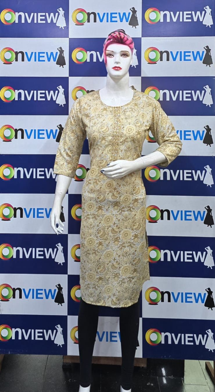 "Refresh your wardrobe with the Onview Rayon Embroidery Kurti, a blend of style, grace, and comfort."