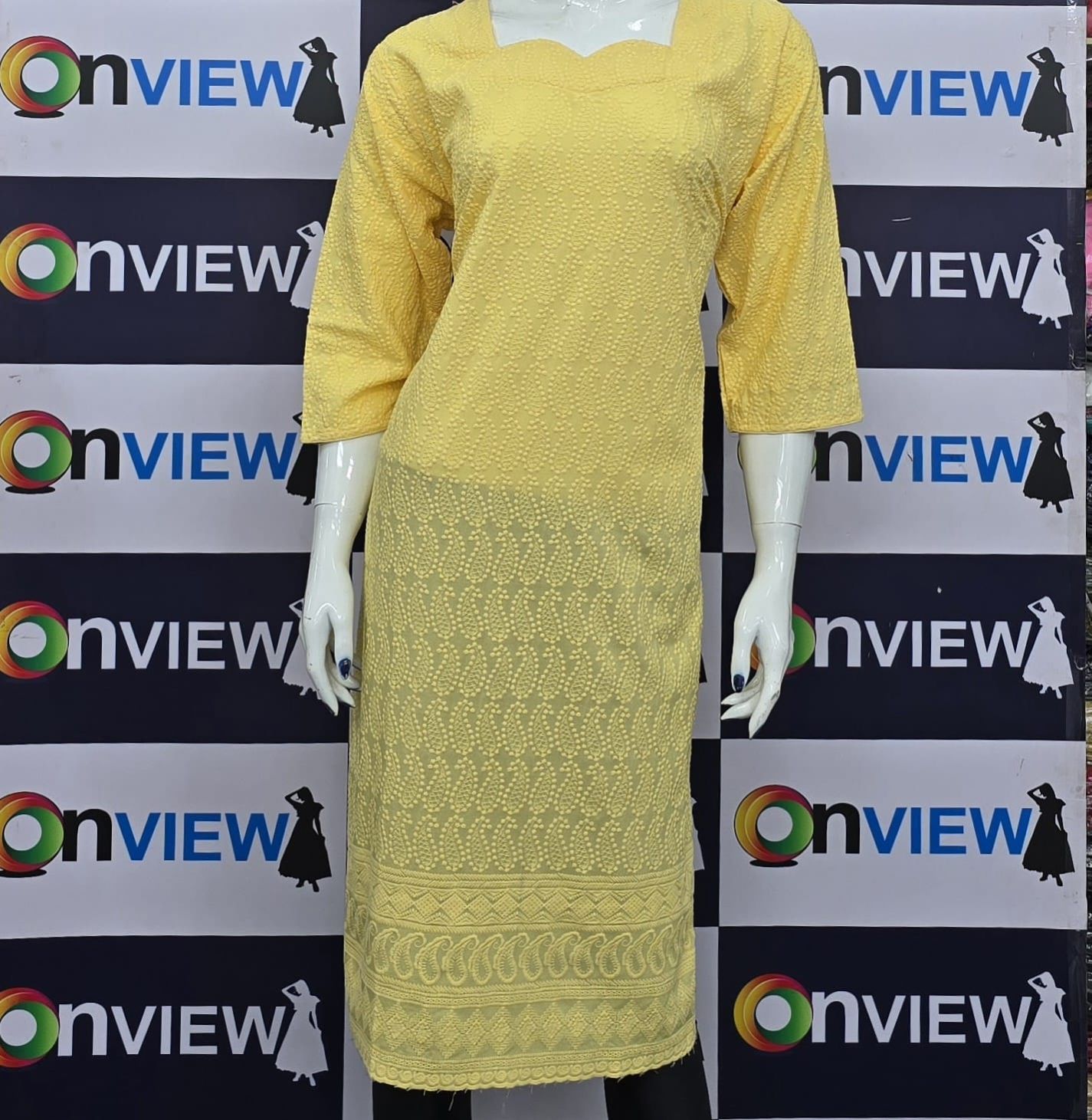 Experience the timeless elegance of Lucknow with our exquisite Onview Chikankari side-open kurti. This handcrafted masterpiece showcases intricate needlework, a testament to the rich heritage of Indian embroidery. The delicate chikankari motifs, meticulously stitched by skilled artisans, create a mesmerizing interplay of light and shadow. The side-open design adds a contemporary touch, making it a versatile piece that can be dressed up or down. Whether you're heading to a festive gathering or simply enjoying a relaxed day out, this kurti exudes effortless charm and sophistication. Crafted from breathable cotton, it ensures comfort and breathability all day long. Embrace the beauty of Indian craftsmanship and add a touch of timeless elegance to your wardrobe with this stunning Chikankari side-open kurti.