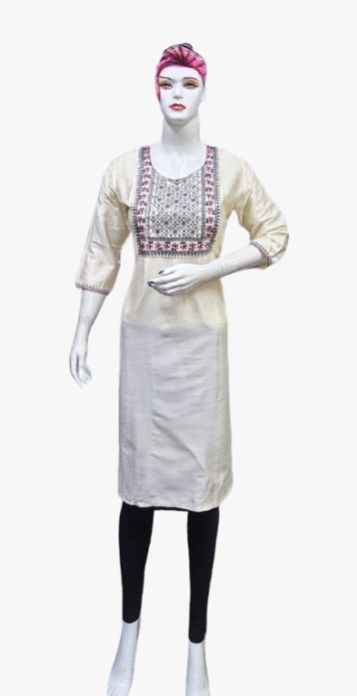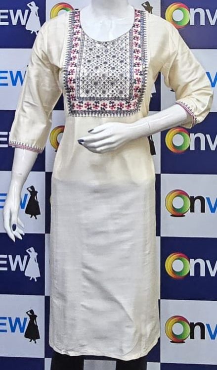 Crafted with premium-quality fabric, it offers unmatched comfort and breathability, ensuring you feel as good as you look. The embroidery design enhances the aesthetic appeal, creating a stunning contrast against the kurti's base color, making it perfect for casual outings, festive celebrations, or office wear.