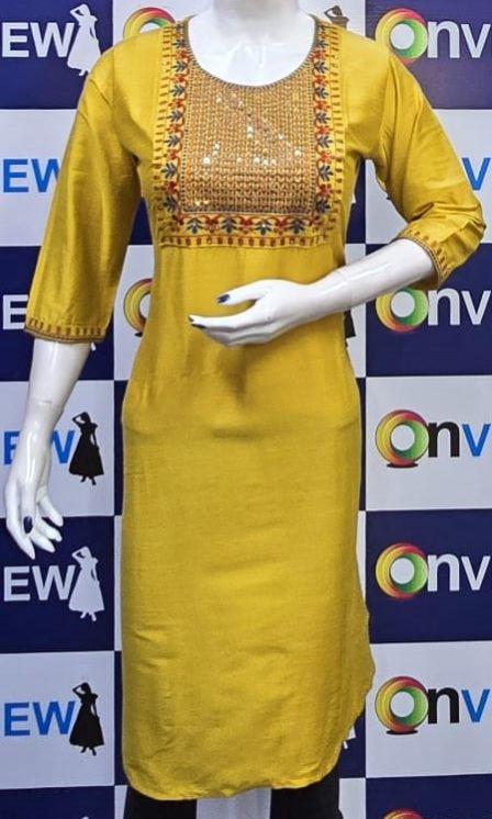 The kurti's flattering silhouette complements all body types, while its attention to detail showcases exceptional artistry. It pairs effortlessly with leggings, palazzos, or even jeans, allowing you to create versatile looks for any event. Easy to style and maintain, the Onview Big Embroidery Kurti is designed to provide both beauty and practicality.