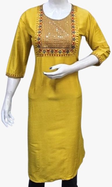 Crafted with premium-quality fabric, it offers unmatched comfort and breathability, ensuring you feel as good as you look. The embroidery design enhances the aesthetic appeal, creating a stunning contrast against the kurti's base color, making it perfect for casual outings, festive celebrations, or office wear.