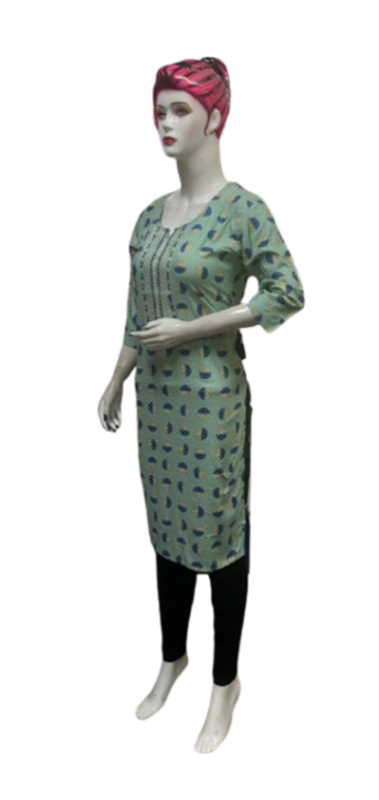 The kurti is adorned with subtle, intricate embroidery that adds a touch of grace and refinement. The small embroidery patterns are thoughtfully placed, creating a harmonious balance that enhances the overall design without overwhelming its simplicity. This design approach makes it versatile, suitable for festive gatherings, casual outings, or even formal office wear.