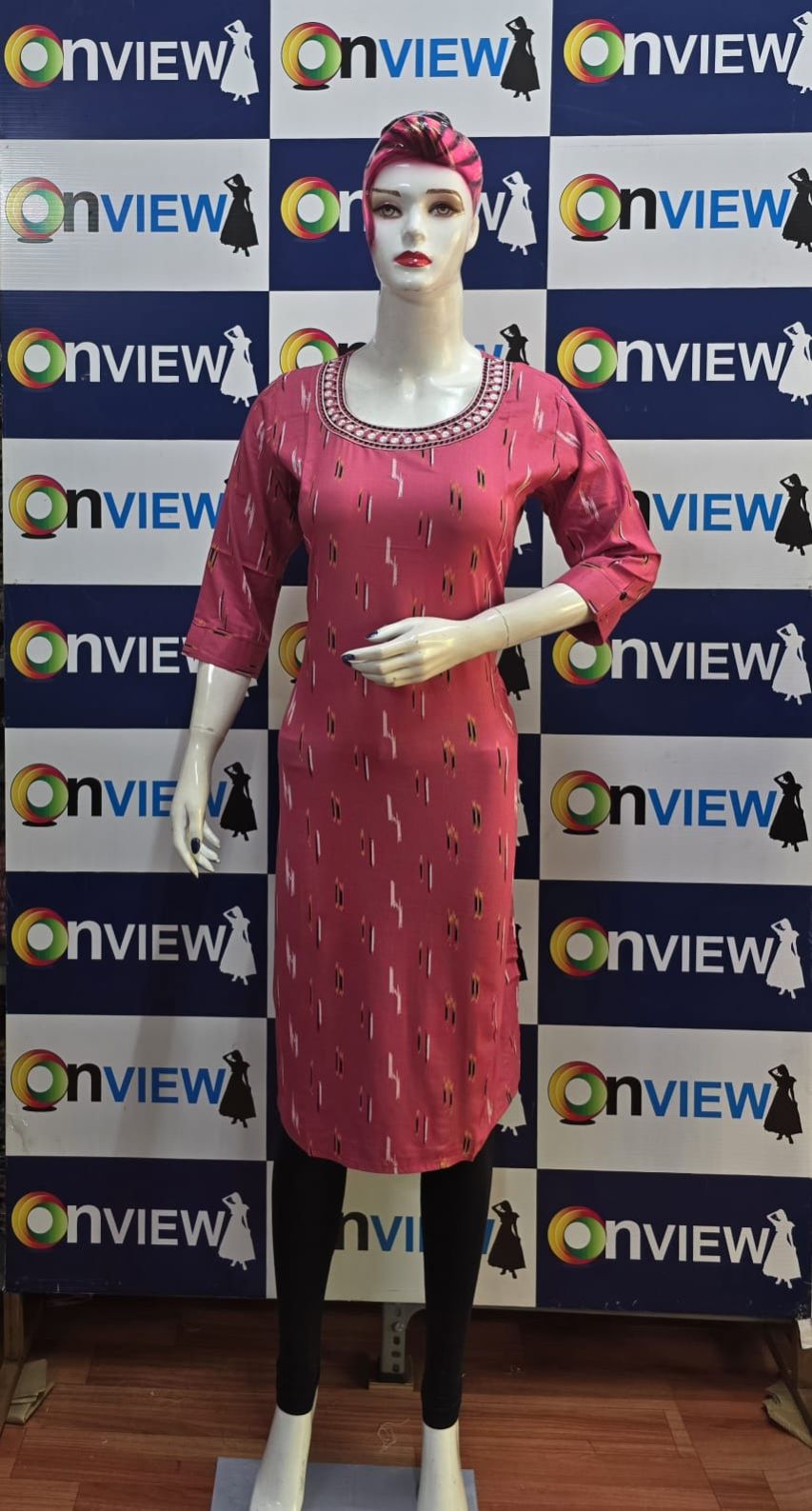 "A classic choice for modern women, the Onview Small Embroidery Kurti combines comfort with elegance."