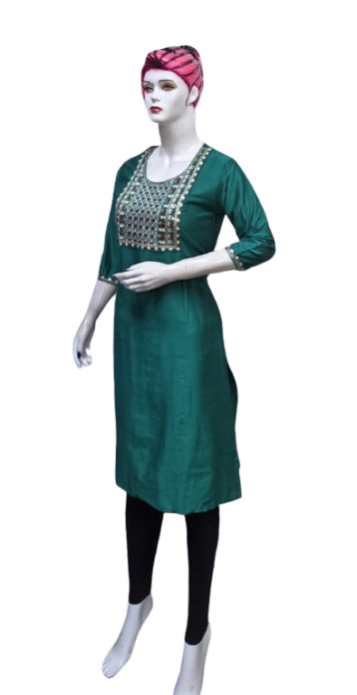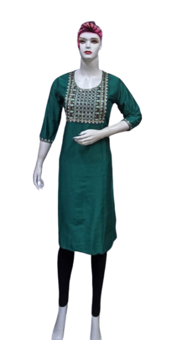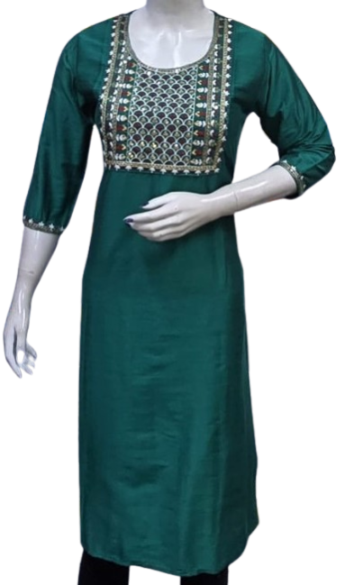 Crafted with premium-quality fabric, it offers unmatched comfort and breathability, ensuring you feel as good as you look. The embroidery design enhances the aesthetic appeal, creating a stunning contrast against the kurti's base color, making it perfect for casual outings, festive celebrations, or office wear.