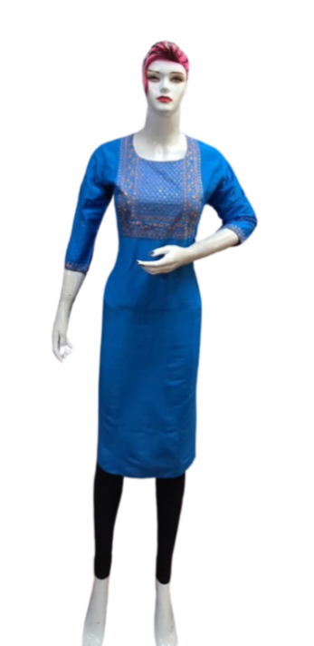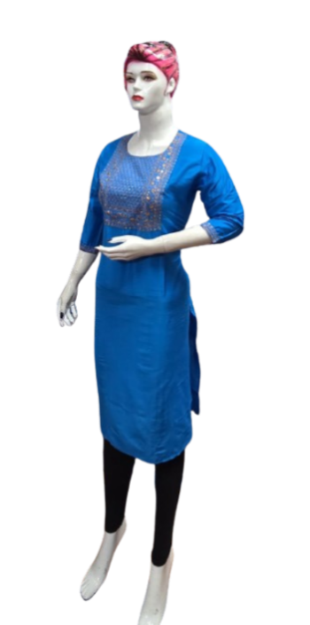 Crafted with premium-quality fabric, it offers unmatched comfort and breathability, ensuring you feel as good as you look. The embroidery design enhances the aesthetic appeal, creating a stunning contrast against the kurti's base color, making it perfect for casual outings, festive celebrations, or office wear.