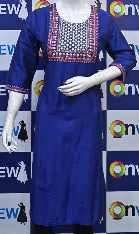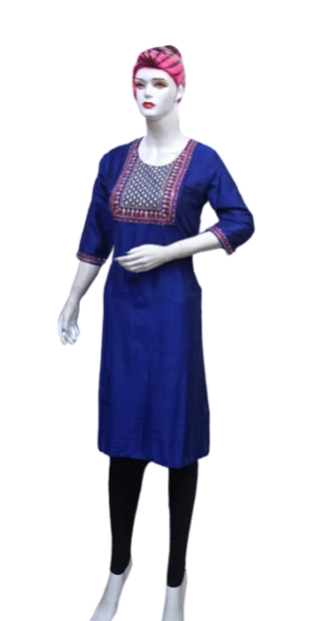 Crafted with premium-quality fabric, it offers unmatched comfort and breathability, ensuring you feel as good as you look. The embroidery design enhances the aesthetic appeal, creating a stunning contrast against the kurti's base color, making it perfect for casual outings, festive celebrations, or office wear.