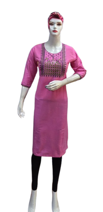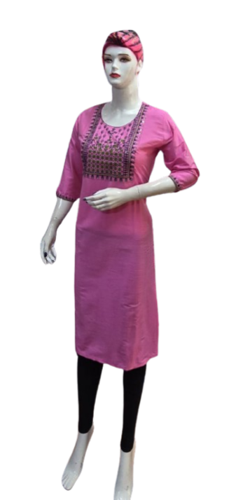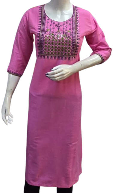Crafted with premium-quality fabric, it offers unmatched comfort and breathability, ensuring you feel as good as you look. The embroidery design enhances the aesthetic appeal, creating a stunning contrast against the kurti's base color, making it perfect for casual outings, festive celebrations, or office wear.