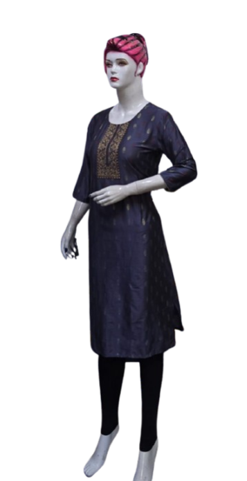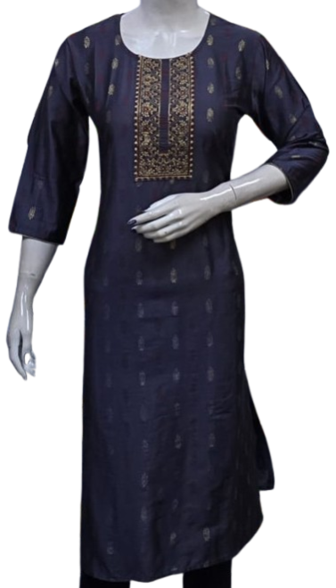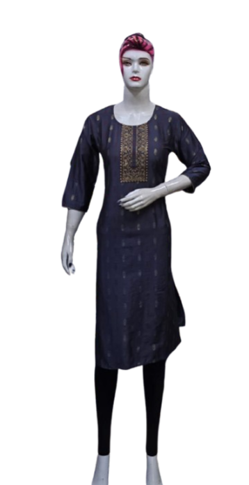 The kurti is adorned with subtle, intricate embroidery that adds a touch of grace and refinement. The small embroidery patterns are thoughtfully placed, creating a harmonious balance that enhances the overall design without overwhelming its simplicity. This design approach makes it versatile, suitable for festive gatherings, casual outings, or even formal office wear.