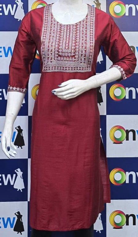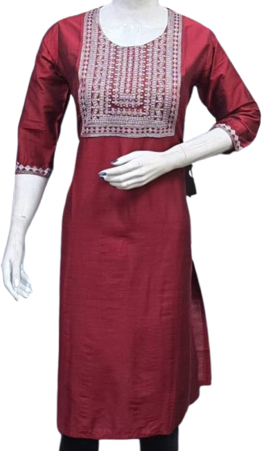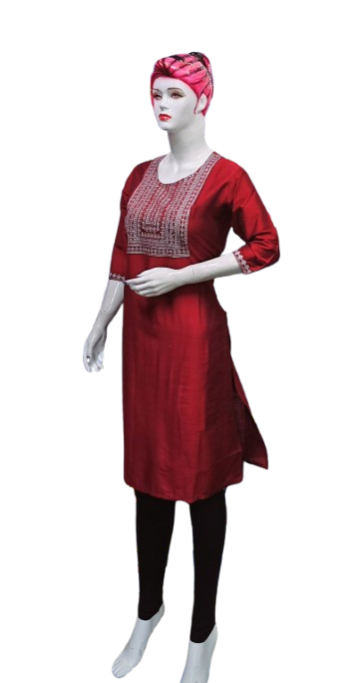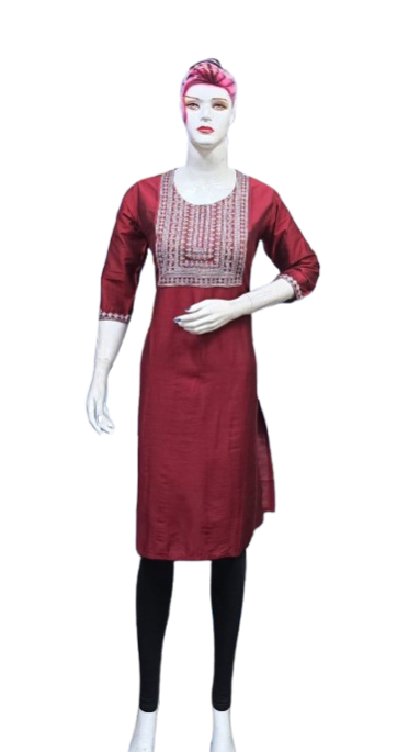 Crafted with premium-quality fabric, it offers unmatched comfort and breathability, ensuring you feel as good as you look. The embroidery design enhances the aesthetic appeal, creating a stunning contrast against the kurti's base color, making it perfect for casual outings, festive celebrations, or office wear.