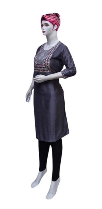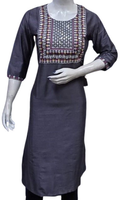 Crafted with premium-quality fabric, it offers unmatched comfort and breathability, ensuring you feel as good as you look. The embroidery design enhances the aesthetic appeal, creating a stunning contrast against the kurti's base color, making it perfect for casual outings, festive celebrations, or office wear.