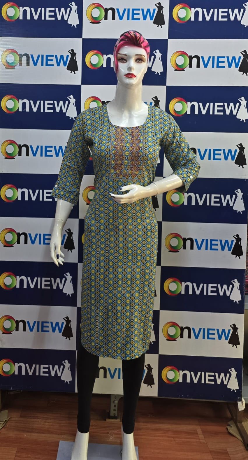 "Feel the softness and the charm of delicate embroidery with the Onview Small Embroidery Kurti."