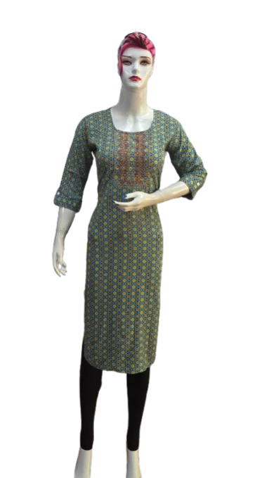 The kurti is adorned with subtle, intricate embroidery that adds a touch of grace and refinement. The small embroidery patterns are thoughtfully placed, creating a harmonious balance that enhances the overall design without overwhelming its simplicity. This design approach makes it versatile, suitable for festive gatherings, casual outings, or even formal office wear.