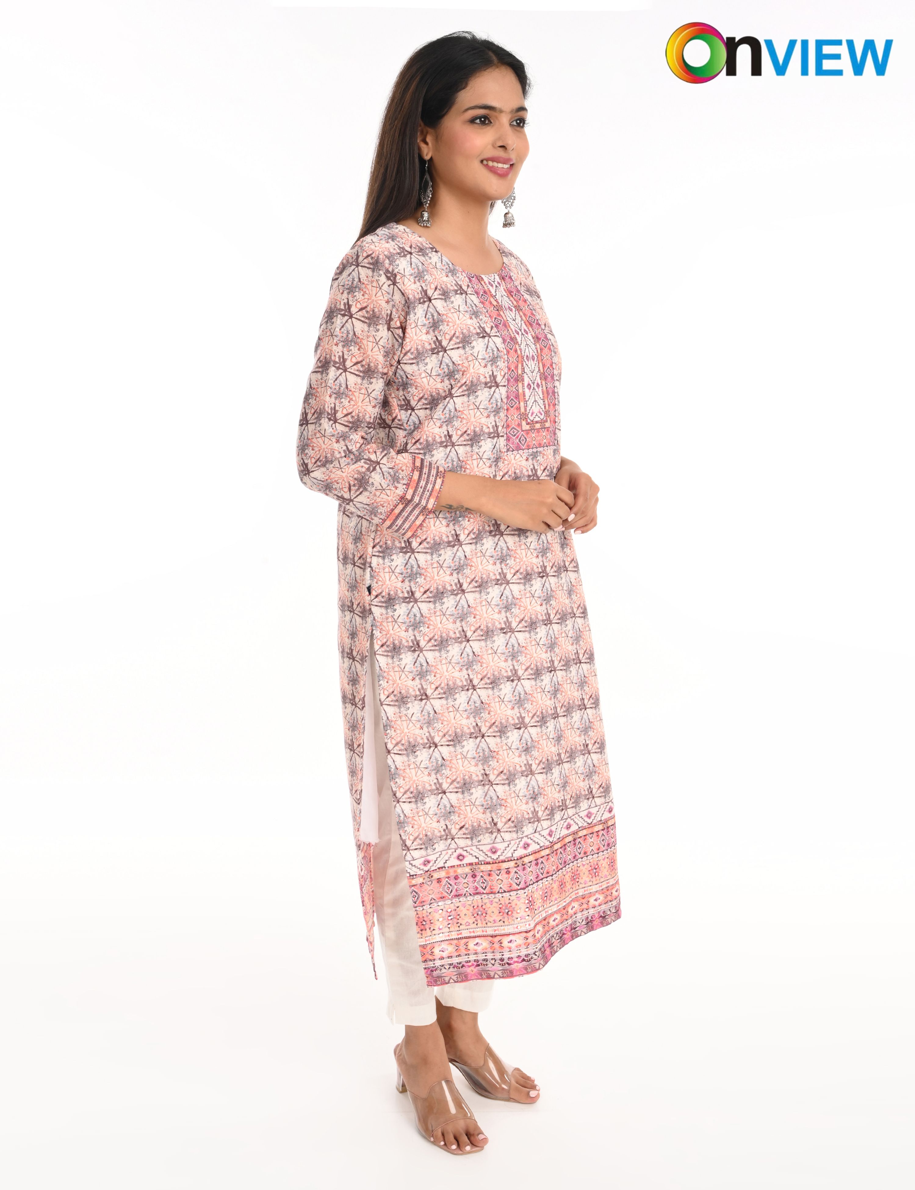 "Designed for modern women, the Onview Cotton Chikankari Work With Digital Print offers timeless elegance and reliable comfort."
