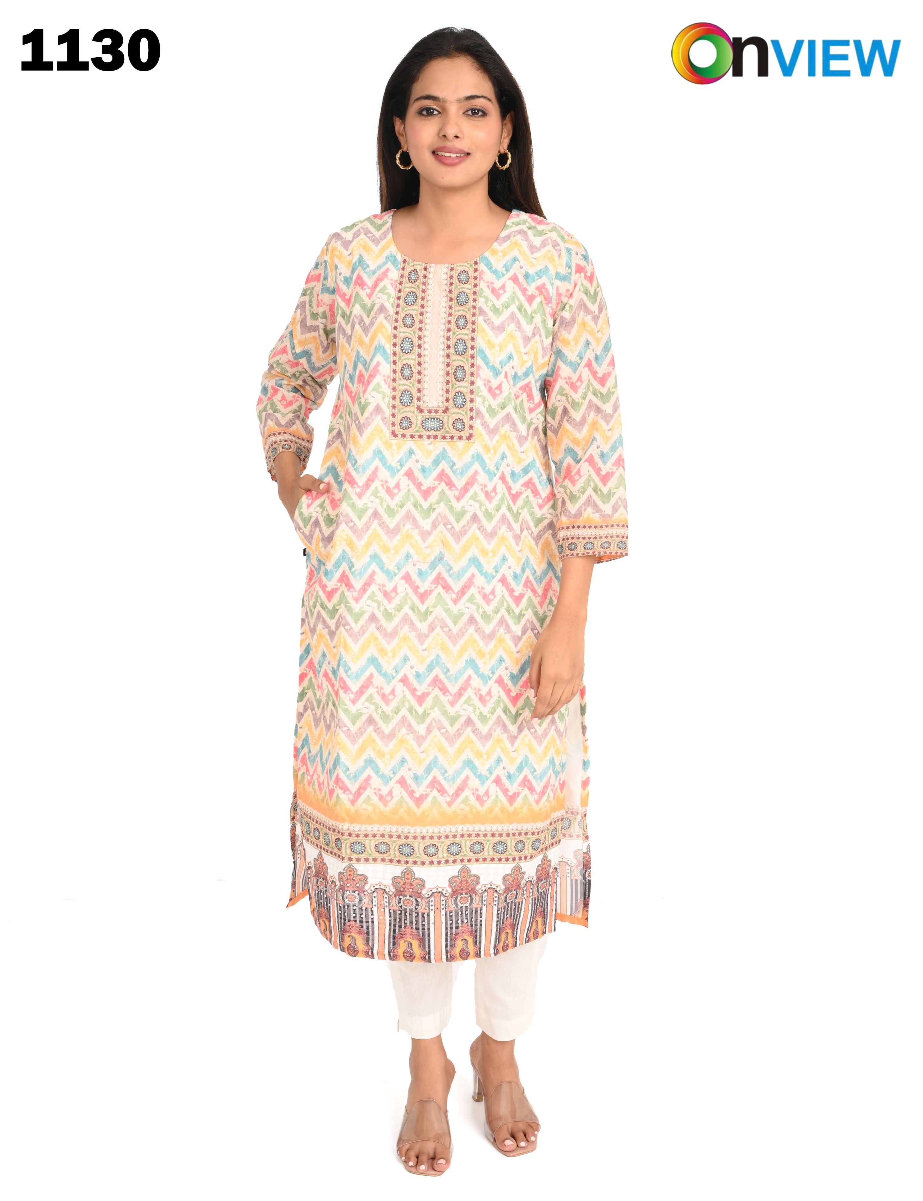 The Onview Cotton Chikankari Work With Digital Print is a sophisticated blend of luxurious fabric and delicate craftsmanship, designed to elevate your style effortlessly. Made from premium-quality silk, this kurti boasts a rich texture and an elegant sheen that exudes opulence, making it a perfect choice for special occasions or everyday elegance.