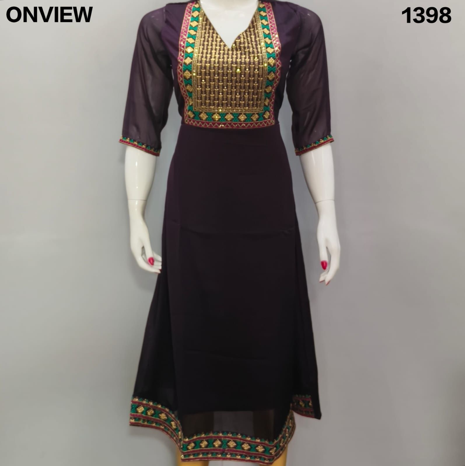 The kurti is adorned with subtle, intricate embroidery that adds a touch of grace and refinement. The small embroidery patterns are thoughtfully placed, creating a harmonious balance that enhances the overall design without overwhelming its simplicity. This design approach makes it versatile, suitable for festive gatherings, casual outings, or even formal office wear.