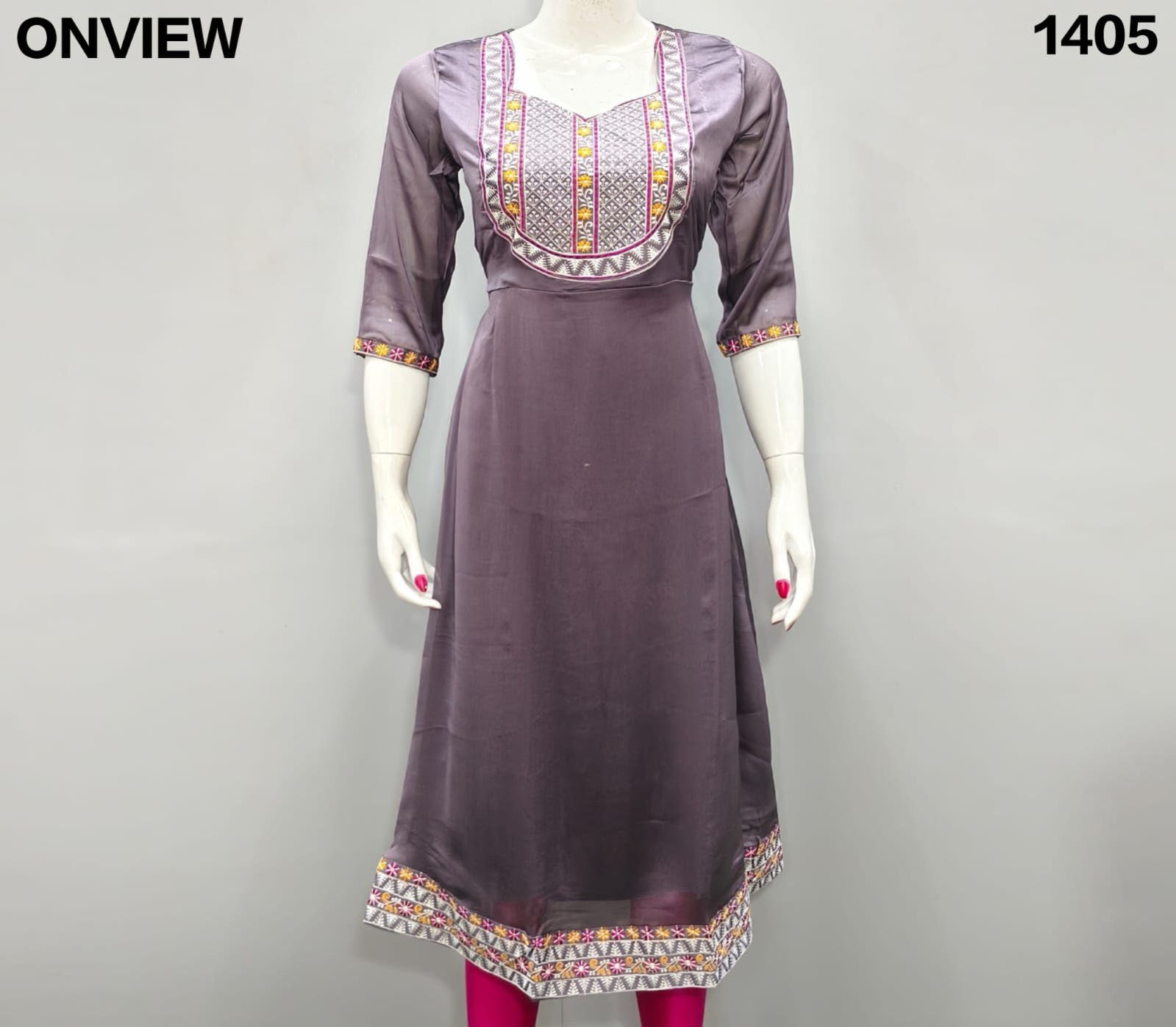 The kurti is adorned with subtle, intricate embroidery that adds a touch of grace and refinement. The small embroidery patterns are thoughtfully placed, creating a harmonious balance that enhances the overall design without overwhelming its simplicity. This design approach makes it versatile, suitable for festive gatherings, casual outings, or even formal office wear.