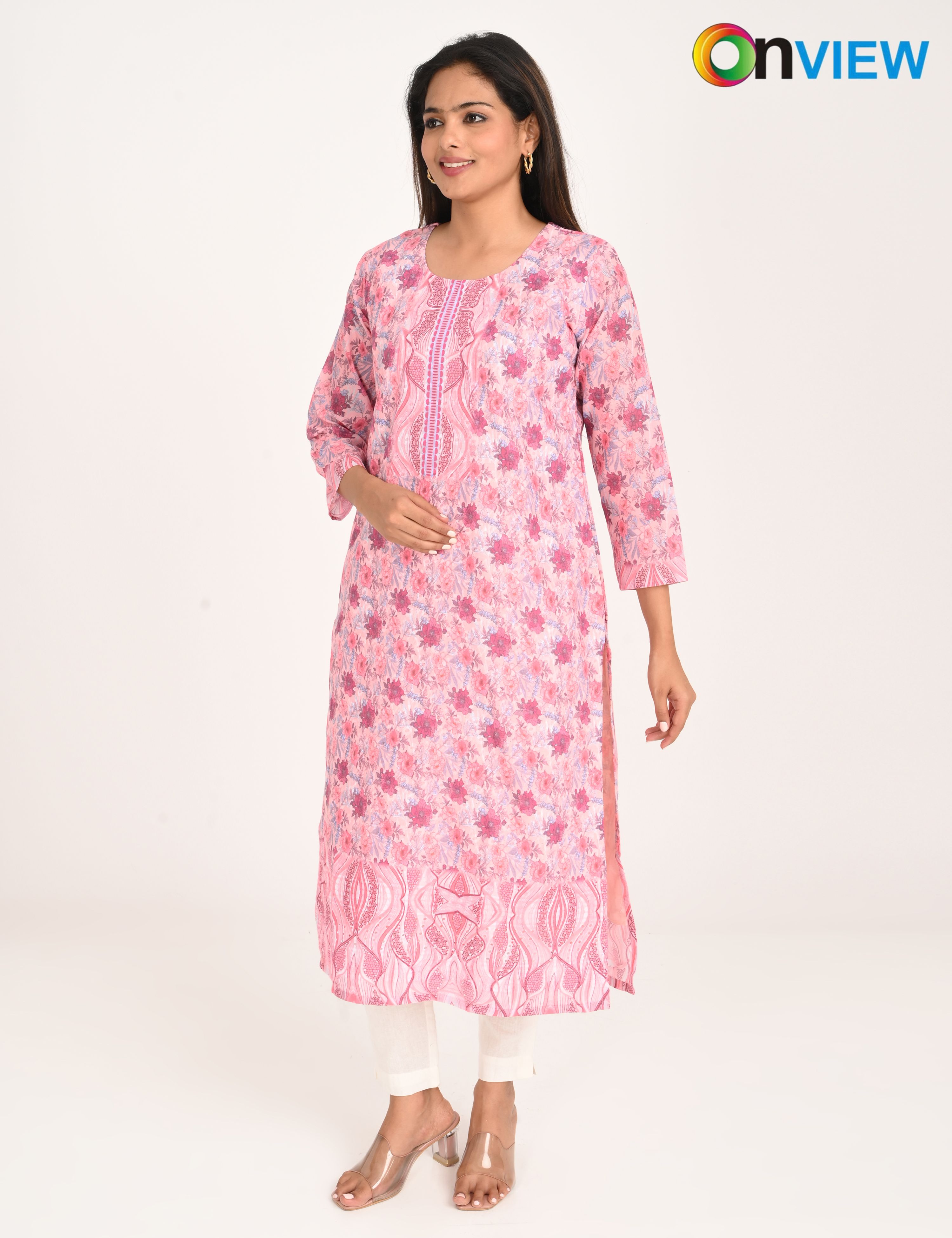 "Designed for modern women, the Onview Cotton Chikankari Work With Digital Print offers timeless elegance and reliable comfort."