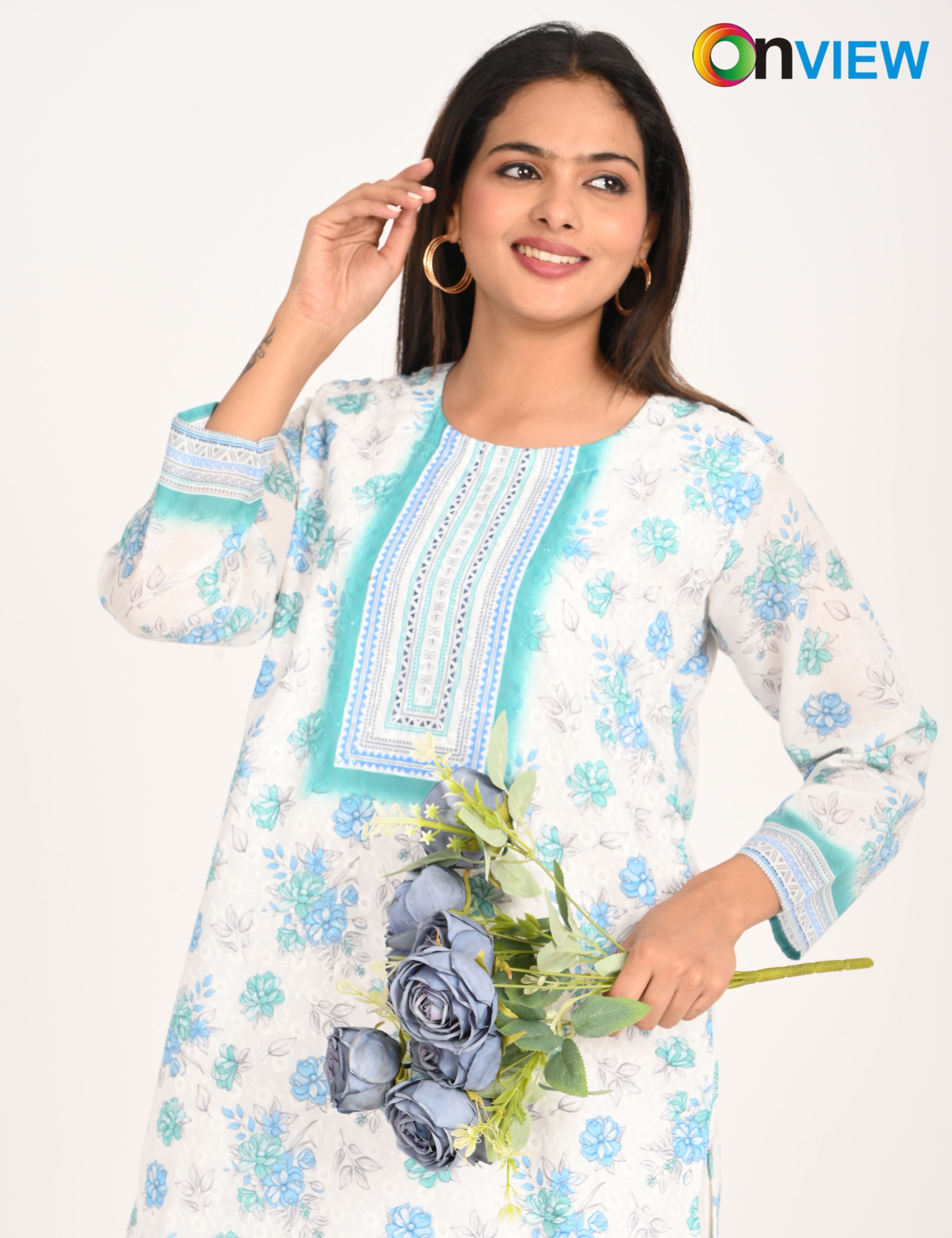 "Designed for modern women, the Onview Cotton Chikankari Work With Digital Print offers timeless elegance and reliable comfort."