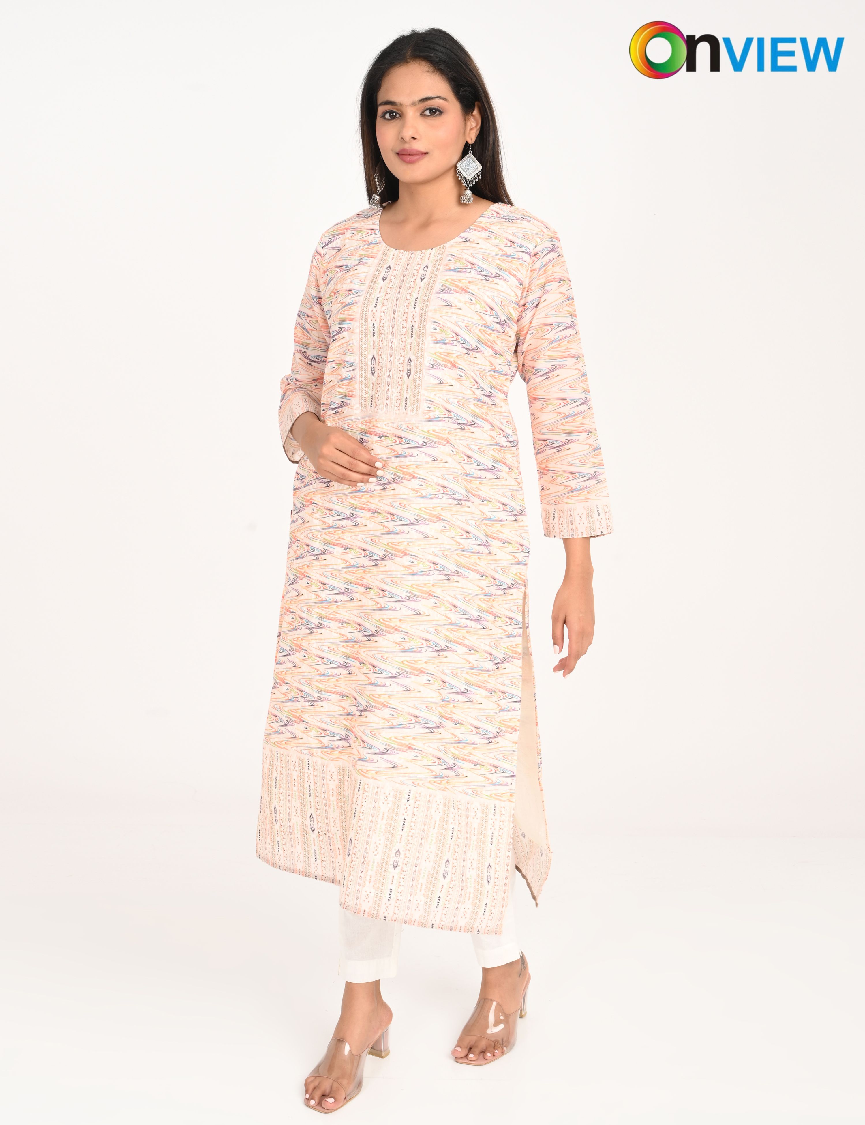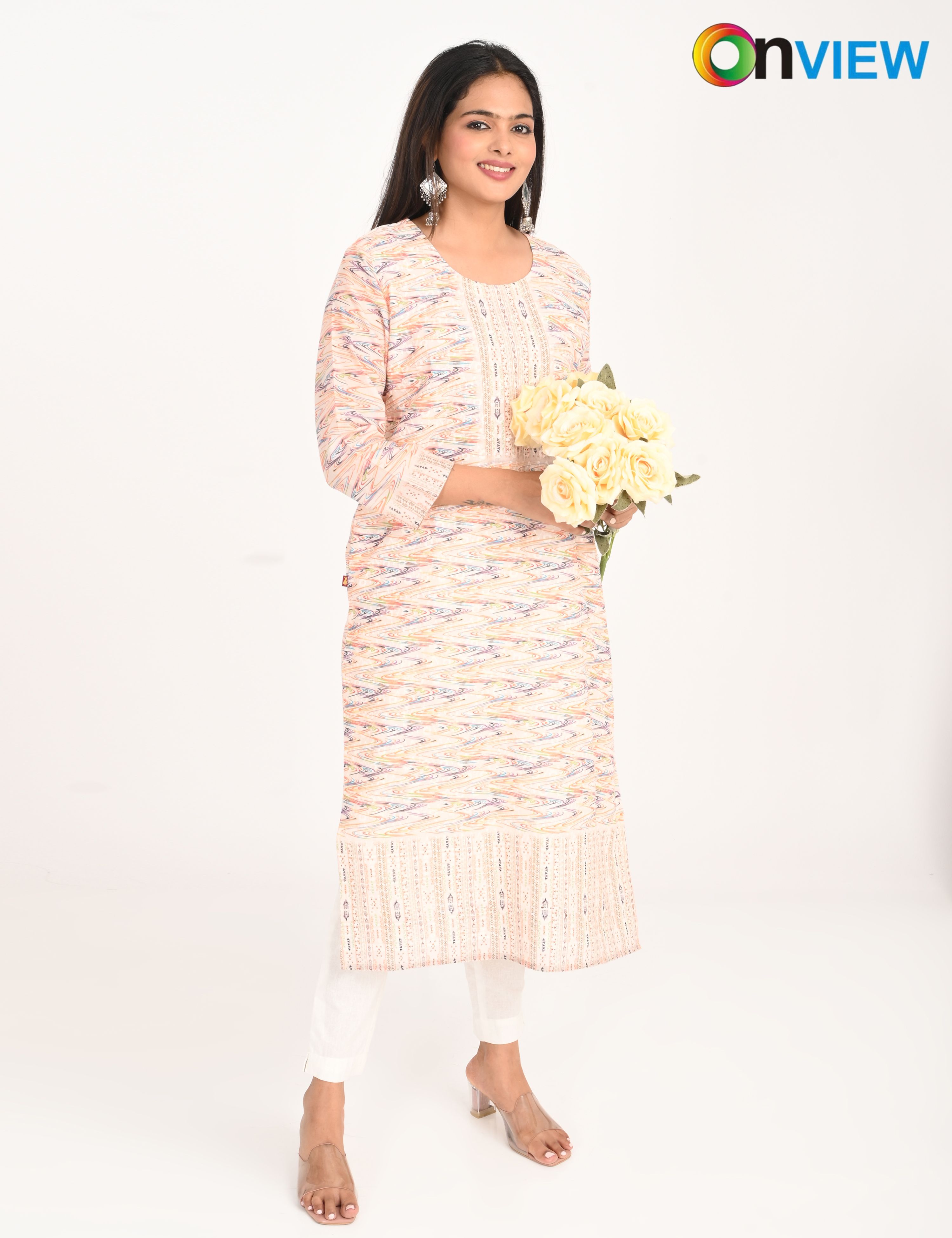 "Designed for modern women, the Onview Cotton Chikankari Work With Digital Print offers timeless elegance and reliable comfort."