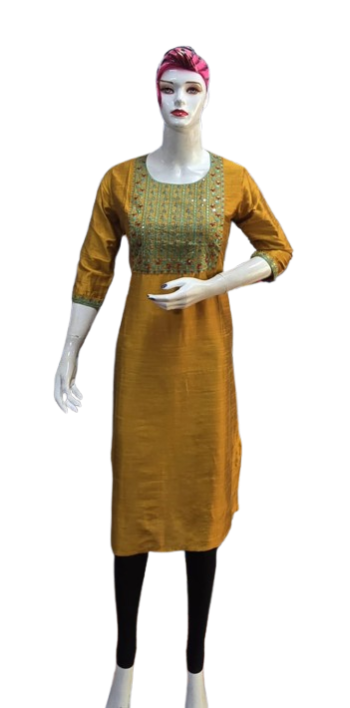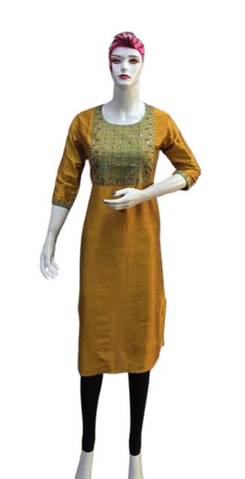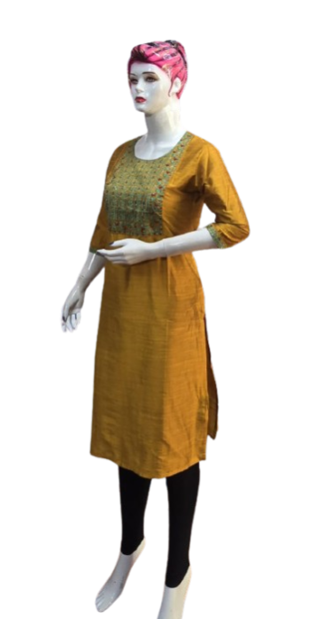 Crafted with premium-quality fabric, it offers unmatched comfort and breathability, ensuring you feel as good as you look. The embroidery design enhances the aesthetic appeal, creating a stunning contrast against the kurti's base color, making it perfect for casual outings, festive celebrations, or office wear.