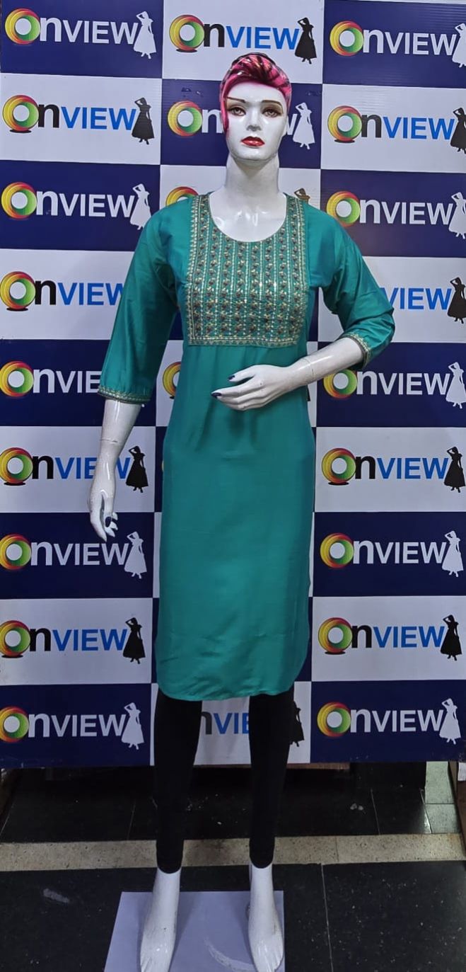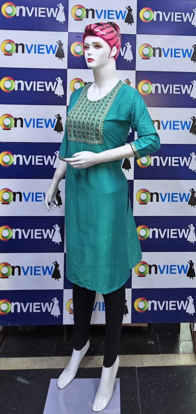 "Turn heads in the Onview Big Embroidery Kurti, featuring detailed designs for a standout look."