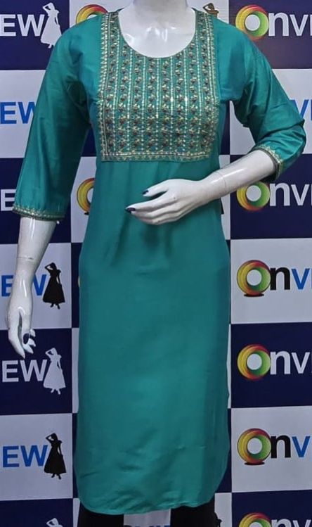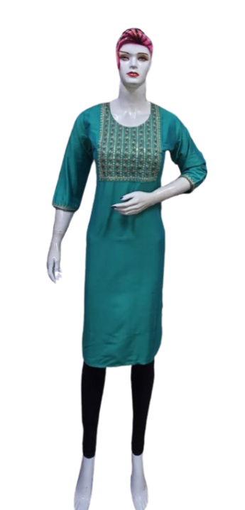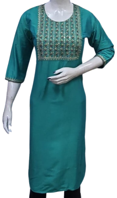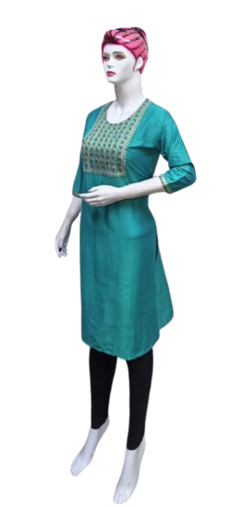 Crafted with premium-quality fabric, it offers unmatched comfort and breathability, ensuring you feel as good as you look. The embroidery design enhances the aesthetic appeal, creating a stunning contrast against the kurti's base color, making it perfect for casual outings, festive celebrations, or office wear.